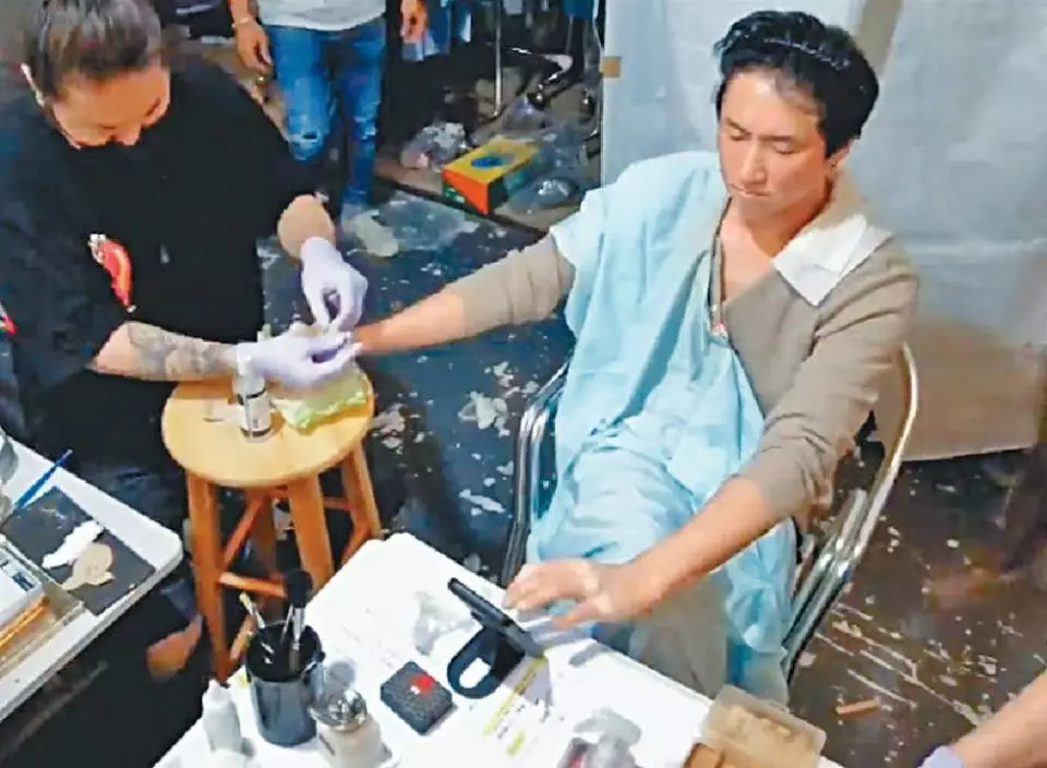 ■片中有濕疹嘅洪天明,每次開工都需要花6小時化特技妝。