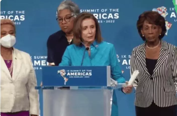 視頻顯示,佩洛西在本月舉行的「美洲峰會」記者會上接受提問。來自委內瑞拉的記者卡拉·安哥拉問道:「你們認為的委內瑞拉『民選領袖』瓜伊多並未出席(峰會)。您怎麼看,瓜伊多沒出席?」