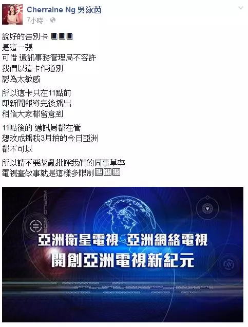 消失的「告別卡」 亞視前主播解畫通訊局不允許