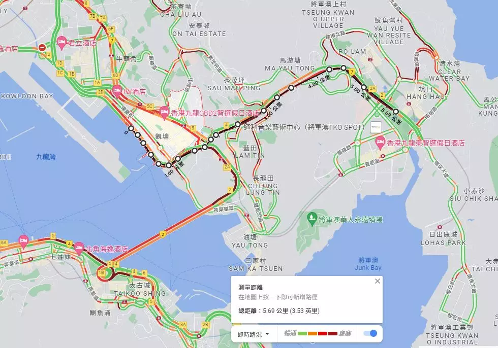 下午6時觀塘一帶交通實施路況。Google Map截圖