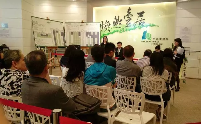 市區重建局首個資助出售房屋項目「煥然壹居」提早於今天起一連4天予申請人揀樓。揀樓時原本選了H2座一中層單位的郭先生,離場時表示因「貴得濟」最終未有購買,他直指市建局只提供八成四折扣,較預期少,認為「起碼都兩成」。