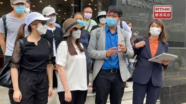 長沙灣樓盤「睿峰」因地產商易手引發消費爭議,10多名「睿峰」苦主下午約見消委會。(譚芷薇攝)