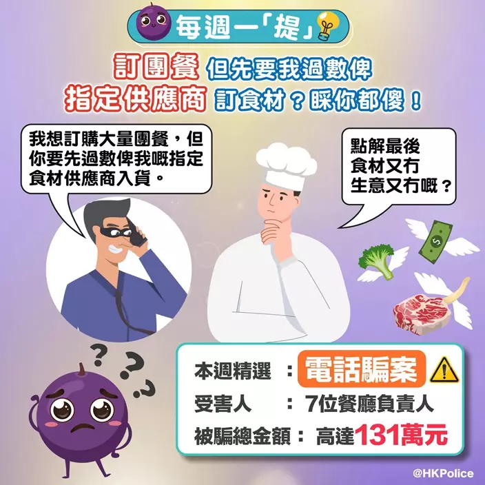 警方表示,今年5月至7月,接獲至少15宗有關假冒學校職員代訂昂貴食品的騙案,而當中單一案件最高的損失金額高達30多萬元。警方指,單單在過去一周已發生7宗類似騙案,形容情況令人憂慮。