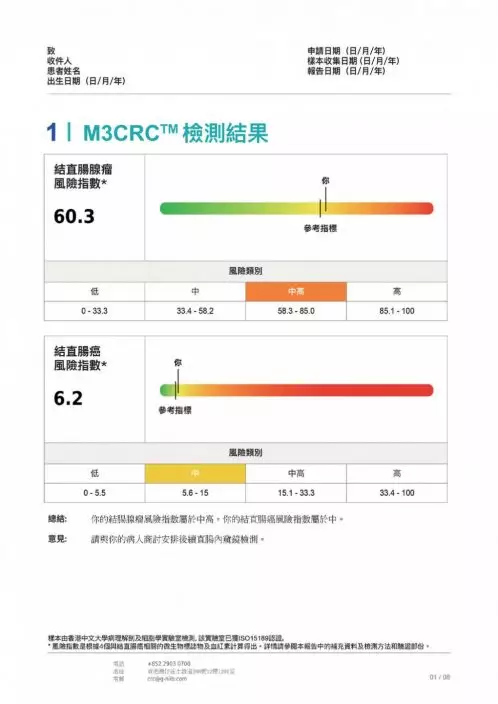 M3大腸癌檢測的報告簡單易明,醫生可根據病者的風險高低提供針對性的治療措施。