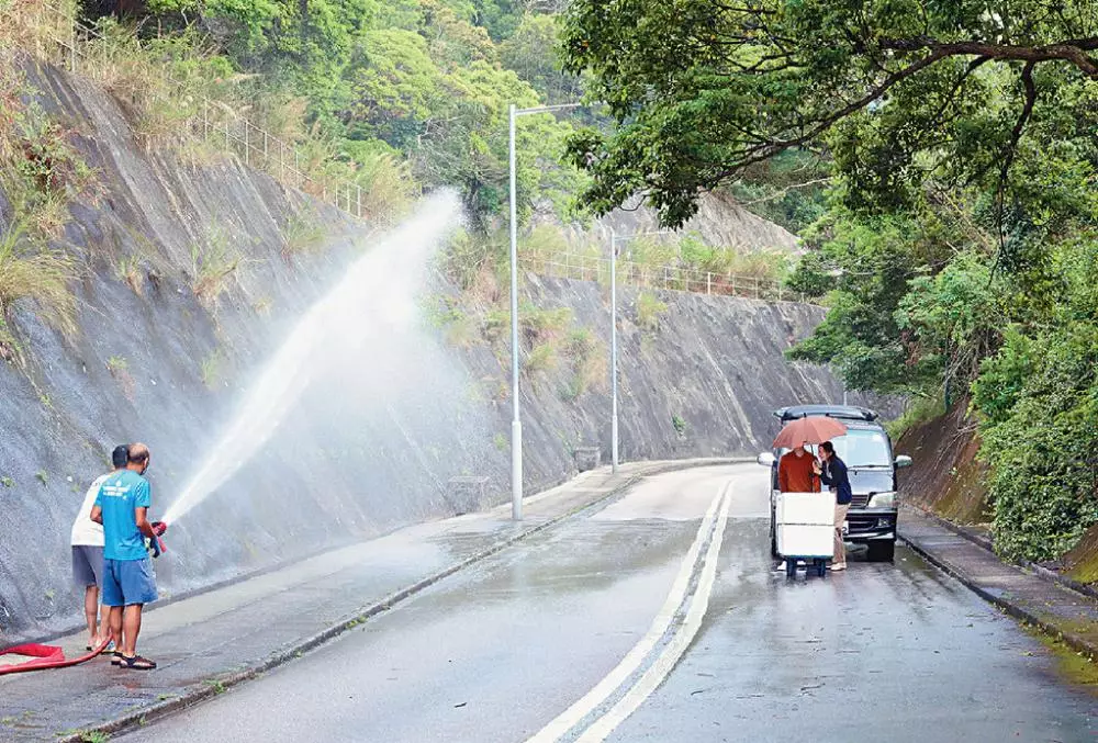 ■外景隊book晒水車營造大雨效果。