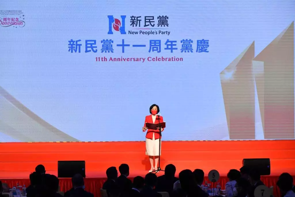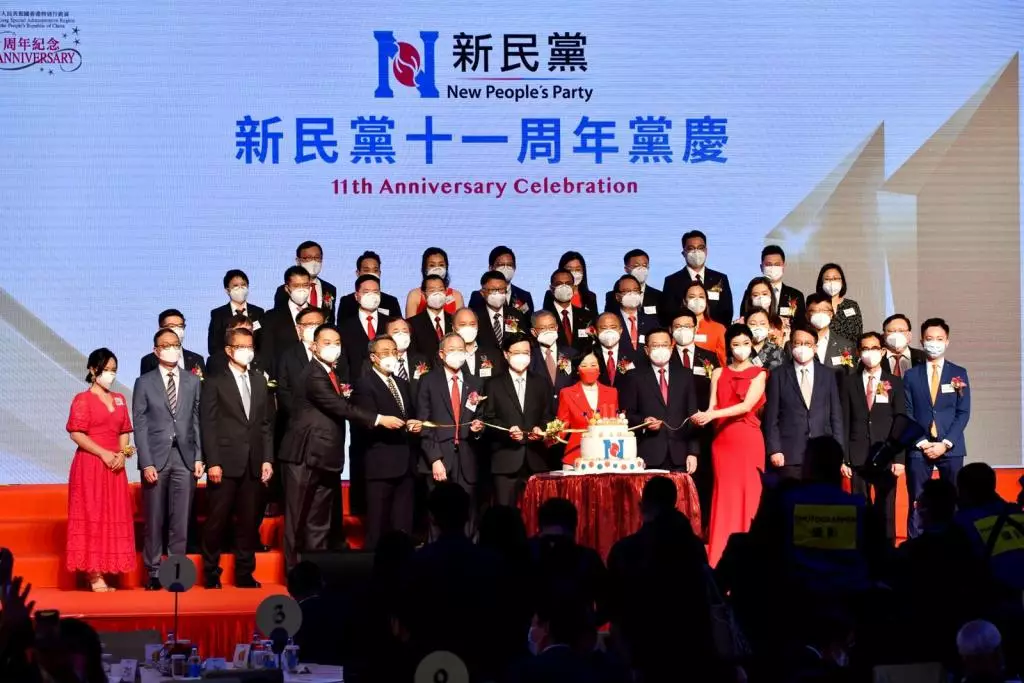 新民黨今日在會展舉辦11周年黨慶,行政長官李家超、政務司司長陳國基、財政司司長陳茂波、律政司司長林定國、立法會主席梁君彥和中聯辦副主任何靖等多位官員、立法會議員、政商界人士出席。