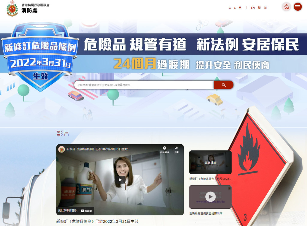 消防處危險品專題網頁,提供有關危險品的資訊: