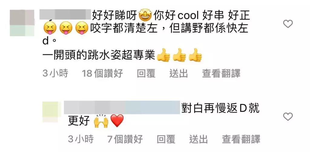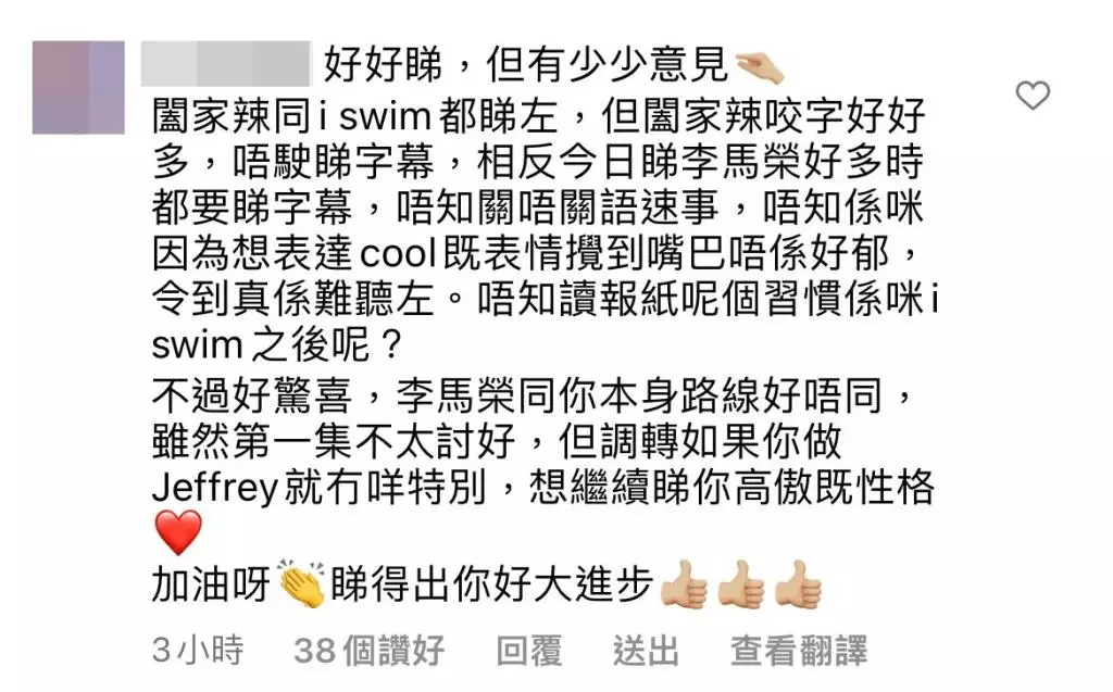 有網民表示已看過《闔家辣》,相比起《I SWIM》表現,電影中的咬字表現較好。