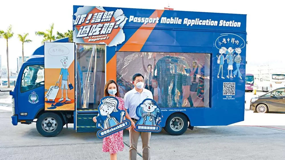 入境處推出特區護照流動申請流動服務站,兩輛宣傳車將於今日起約兩個月內前往全港18區。