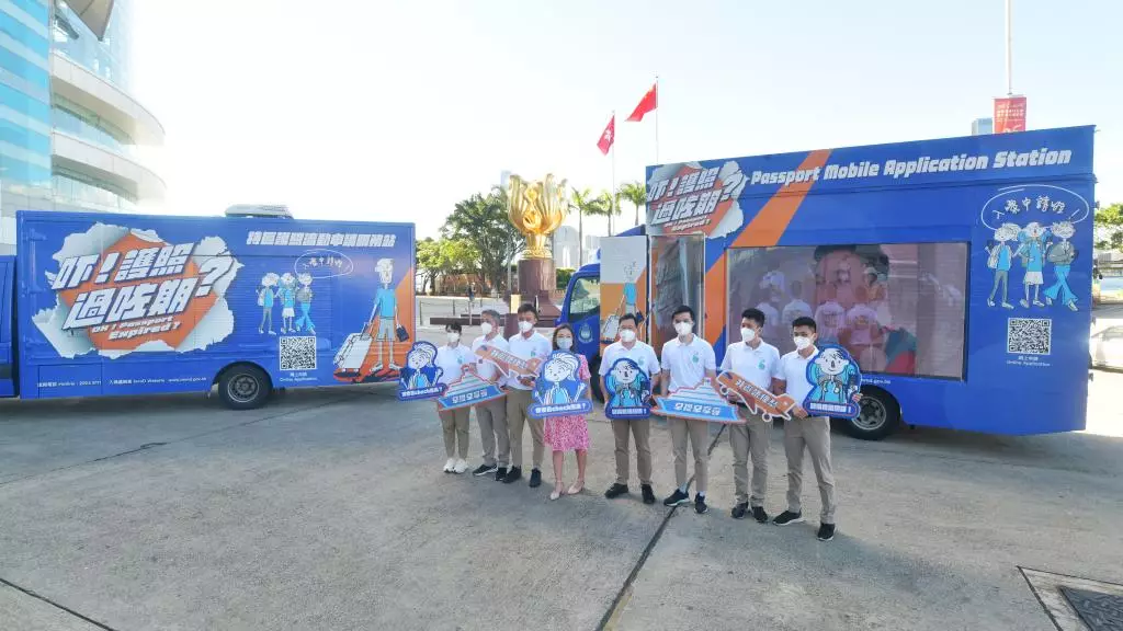 入境處推出特區護照流動申請流動服務站,兩輛宣傳車將於今日起約兩個月內前往全港18區,提醒及協助市民網上申請特區護照。