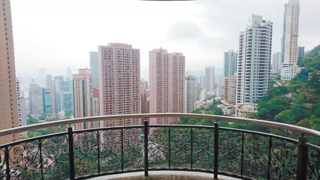單位外望半山豪宅及綠林景致,遠眺商業區高樓大廈。