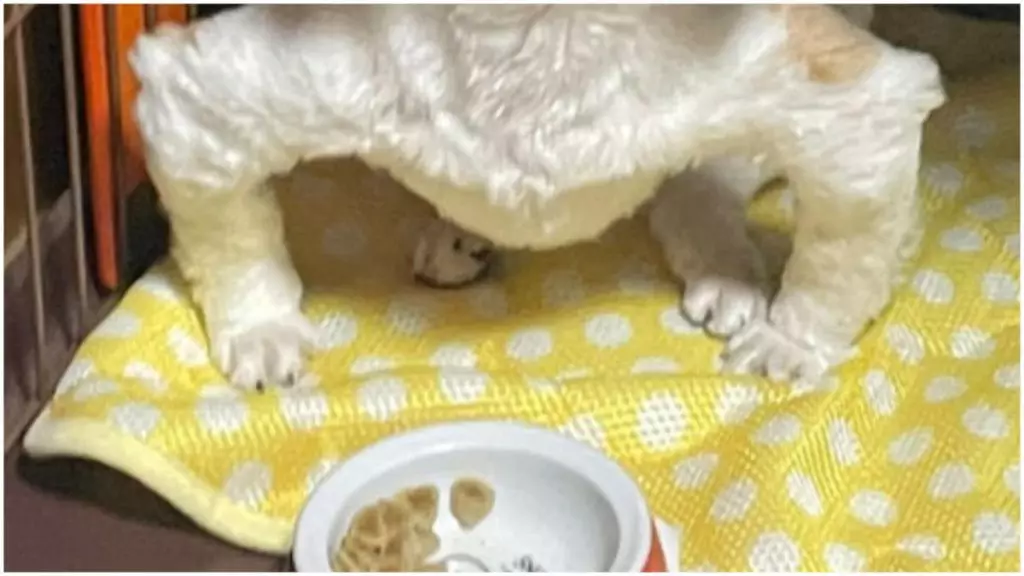 據日媒報道,名為「ぎゃ」的網友在家養了1隻名叫Hiina的摩天使犬,並不時會在帳號上分享自己與Hiina生活中各種趣事。日前他在給Hiina餵飯時,Hiina竟將自己2隻前肢,分別向外彎了90度,彷彿是在邊做掌上壓、邊展現肌肉一樣。