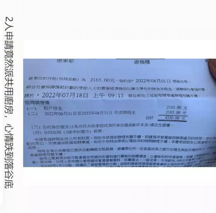 該名港媽於「小紅書」發文指,與女兒輪候2人家庭公屋單位逾7年,近日獲派西灣河康東邨康瑞樓一個約220呎單位,租金每月2,165元,惟需與6至7戶共用廚房,令她大失所望,「心情跌到落谷底」,更直言「為咗所謂快啲上樓,房署拎晒啲貨底出嚟」。