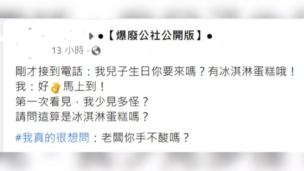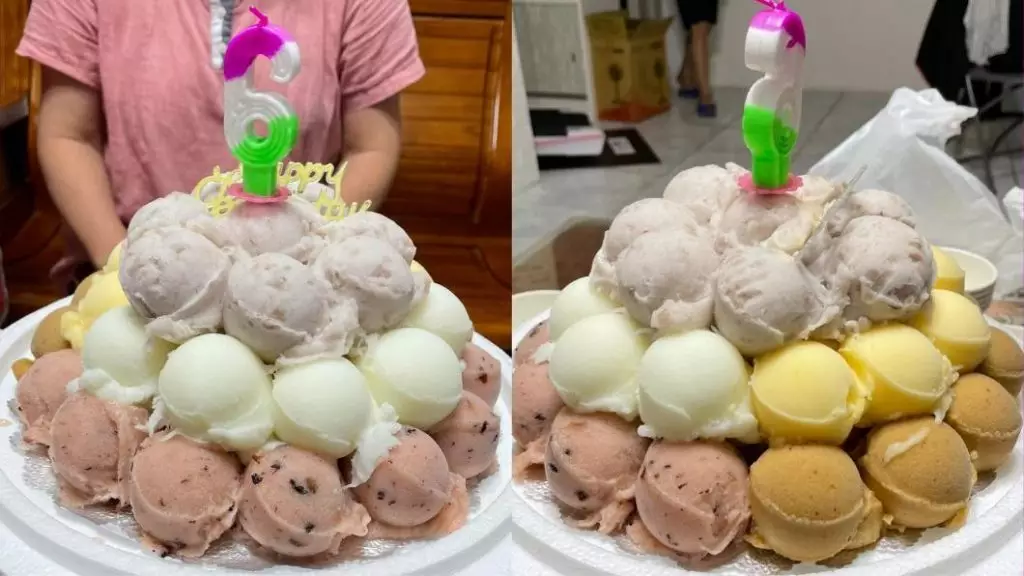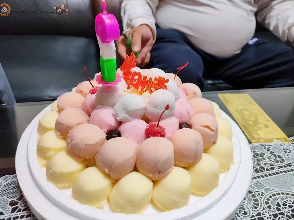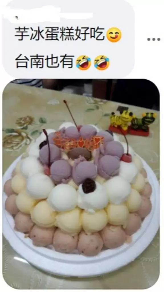 該網友日前在FB「爆廢公社公開版」上分享了雪榚蛋糕的照片,只見在底座上,層層堆疊至少五種口味的雪榚,疊到第三層上頭還插了根蠟燭,和傳統印象中的雪榚蛋糕似乎不太一樣。他透露自己是接到親友電話,指正為兒子慶生日,買了雪榚蛋糕,問他要不要來,沒想到一去到,就見到這個用「叭噗雪榚」砌成的蛋糕,一下子就被震驚到。