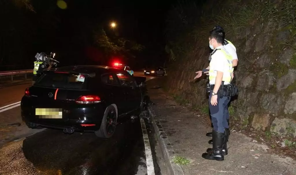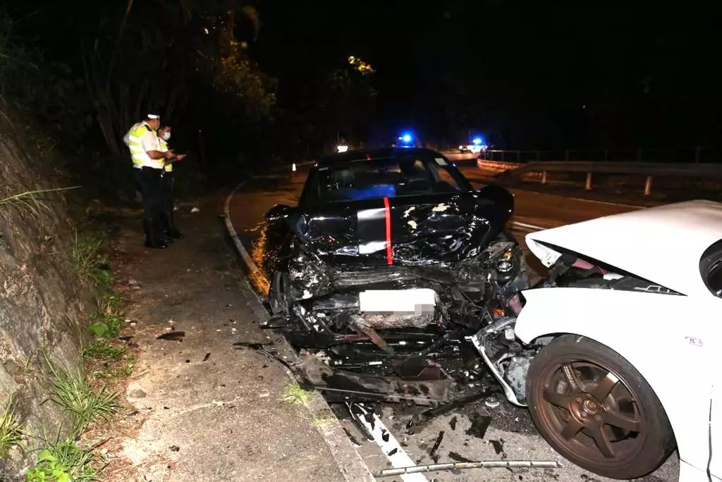 昨晚11時許,1輛掛有P牌私家車,沿荃灣荃錦公路往大帽山方向行駛,當途至曹公潭戶外康樂中心附近對開一個左彎位,據報,疑失控越綫與另一輛白色私家車迎頭相撞。