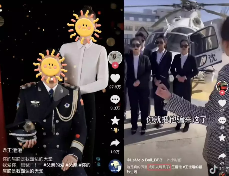 遼寧瀋陽一名年僅31歲、經常炫富的女網紅「王澄澄」近日引起討論,皆因這名網紅早前上載了父親之間的合照,期間自爆父親並非商人富豪,只是一名警察;更甚者,她曾在警用直升機前拍攝短片,自稱直升機是「私人玩具」,事件流傳後惹來爭議。