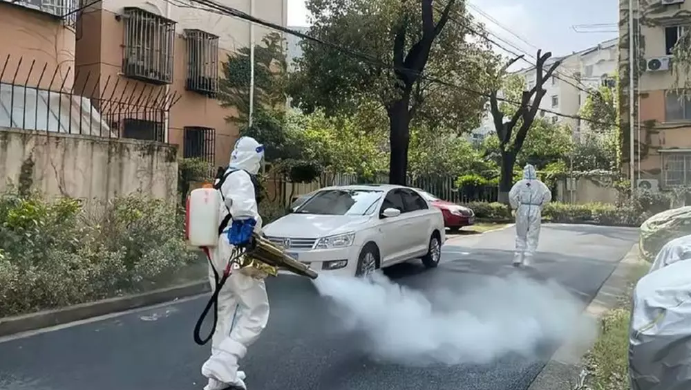 安徽懷遠縣連續7天每晚噴3小時消毒劑。