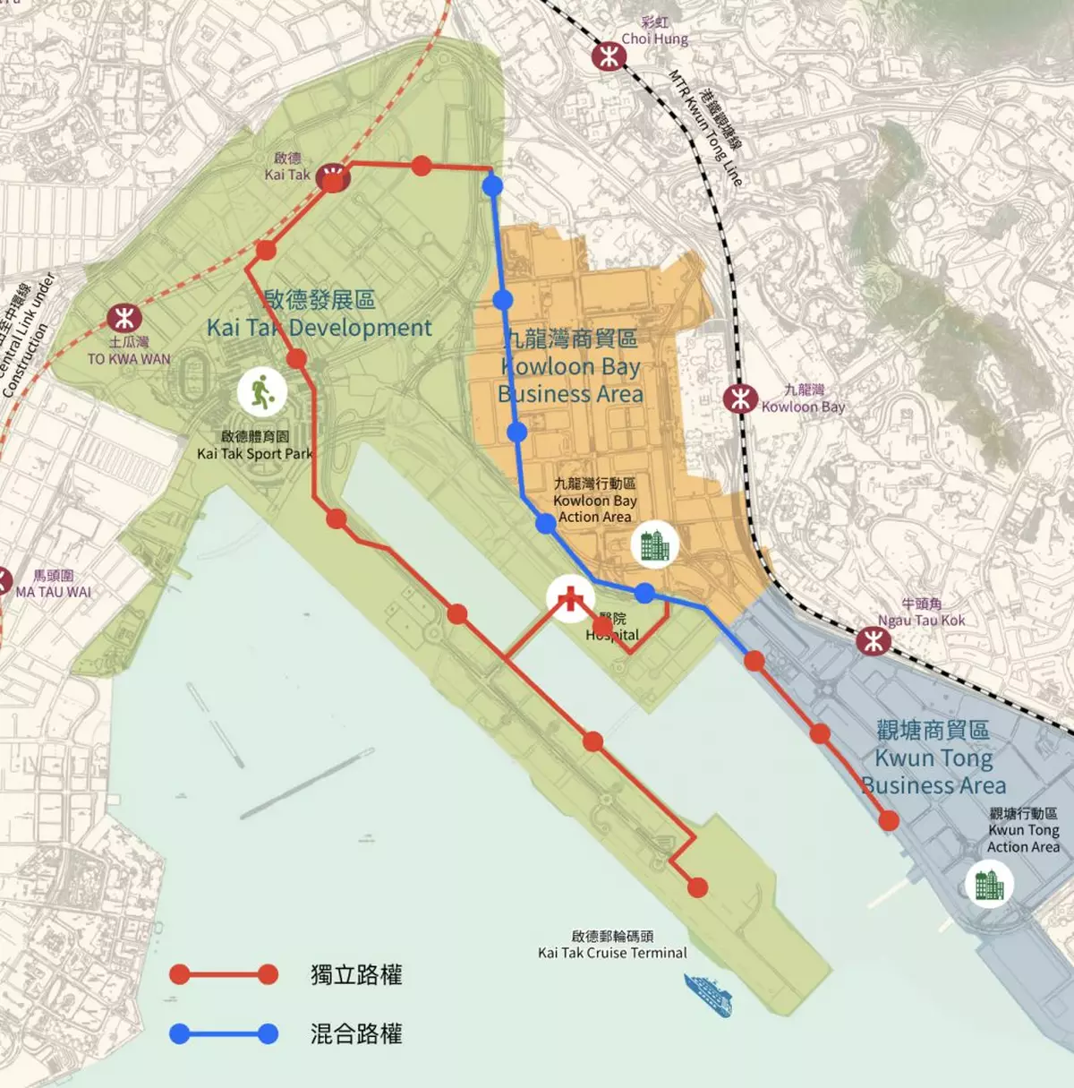 當然,針無兩頭利,利用海濱走廊作電車專線會佔用了原本行人道及單車徑嘅空間。但其實啟德新區本身嘅行人路同單車徑已經好充足,例如跑道區承豐道已建設行人專用嘅空中花園,以及跑道前排向維港一面嘅海濱亦已規劃了闊數十米嘅行人道及共融單車徑。所以即使電車佔用了部份內海海濱走廊嘅位置,對行人及單車前往啟德跑道嘅暢達程度影響相當輕微。