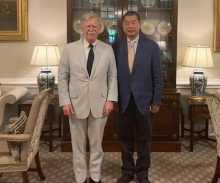 時任美國國家安全顧問博爾頓會見黎智英。