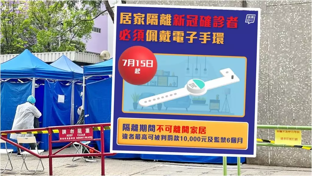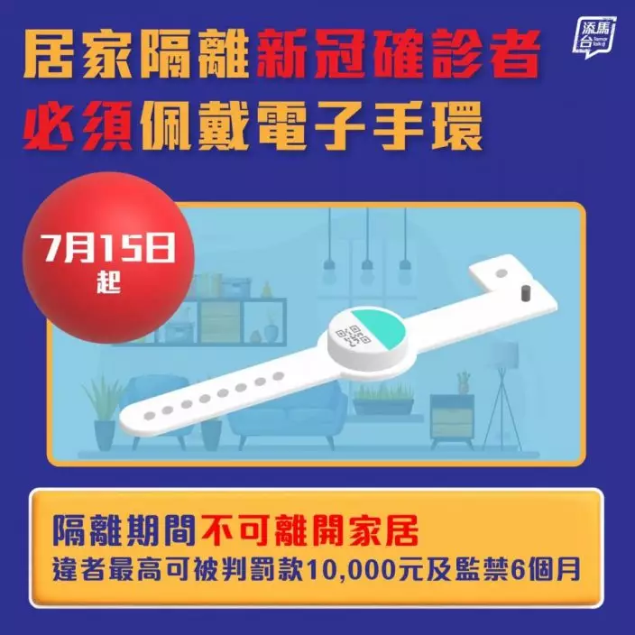 政府要求確診染疫的人士於居家隔離期間必須戴上電子手環。小圖為fb「添馬台」圖片