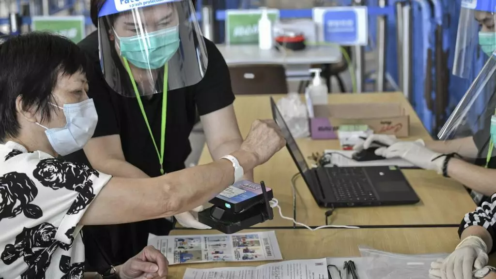 為減低社區傳播風險,政府要求確診的人士於居家隔離期間戴上電子手環。網上截圖(小圖為fb「添馬台」圖片)
