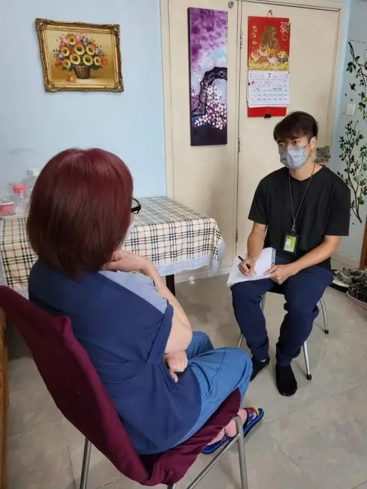 社工聆聽陳女士(化名)照顧上的困難。 計劃提供圖片