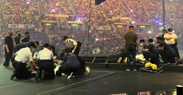 MIRROR演唱會大屏幕鬆脫,舞蹈員被擊中倒地,魯庭暉道歉。