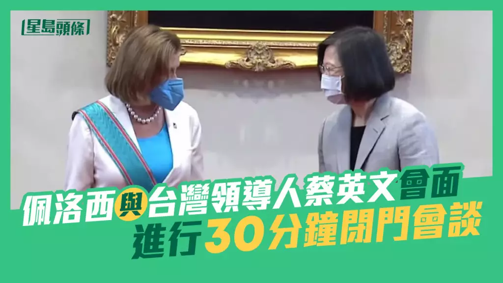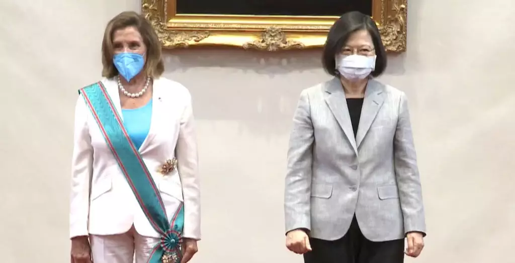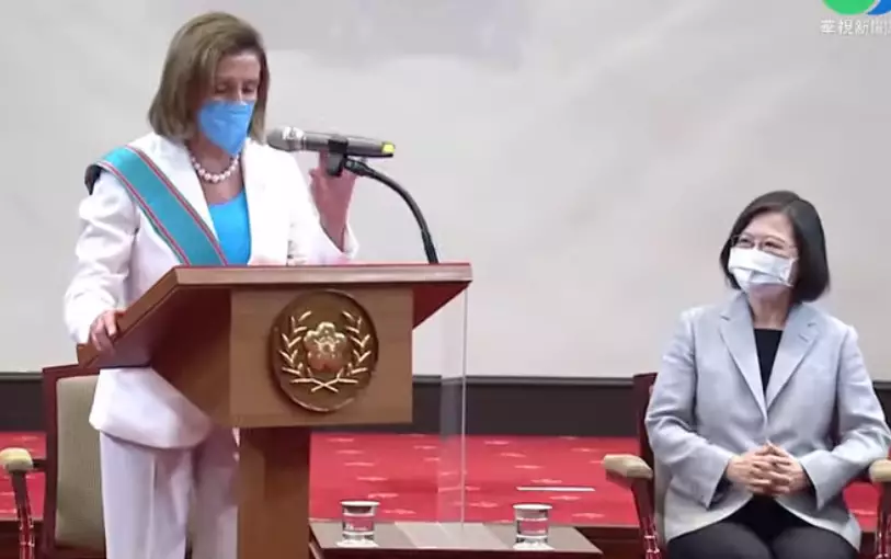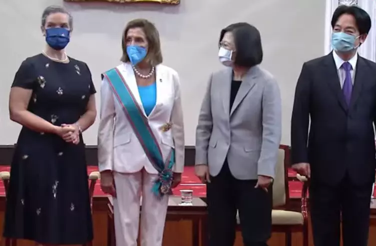 美國眾議院議長佩洛西展開訪台行程,早上在到訪立法機構後,又馬不停蹄到台灣當局領導人幕僚機構與台灣當局領導人蔡英文會晤。蔡英文向佩洛西頒授「特種大綬卿雲勳章」,表彰及感謝她對台灣長久以來的堅定支持,及對提升台美交流的卓著貢獻。