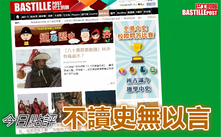 由《巴士的報》和《星島日報》搞的「全港中史校際問答比賽」結束,由中華傳道會安柱中學奪得冠軍。現場所見,參加比賽的學生,歷史常識極之豐富,搶答問題快捷無倫,令人大感意外,亦讓我感慨良多。