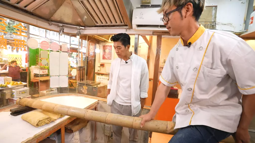 第三集,諾懿仲有機會近距離觀摩製作竹昇麵的過程。