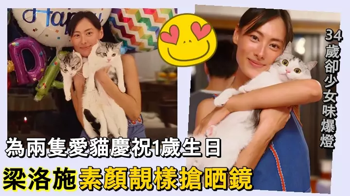 梁洛施個靚樣,不知不覺搶咗兩隻壽星愛貓嘅鏡頭。