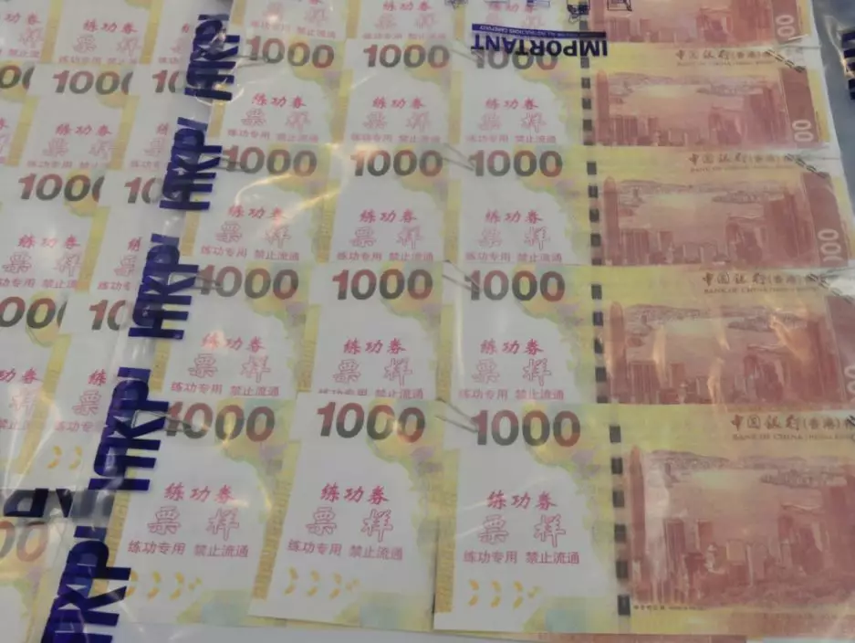 騙徒交易期間混雜大量「練功券」偽鈔。