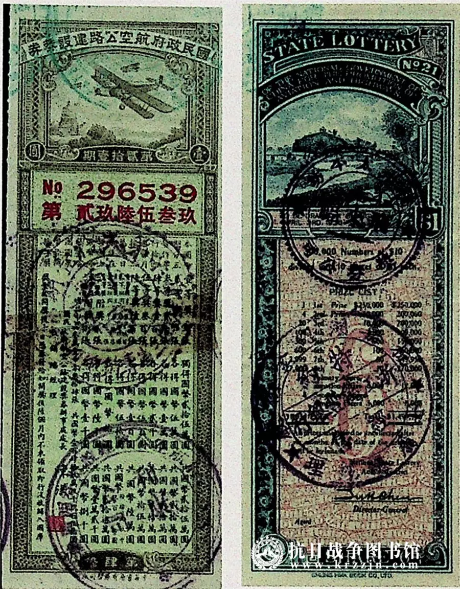 1936年4月3日開獎的國民政府航空公路建設獎券(第二十一期)。(網上圖片)
