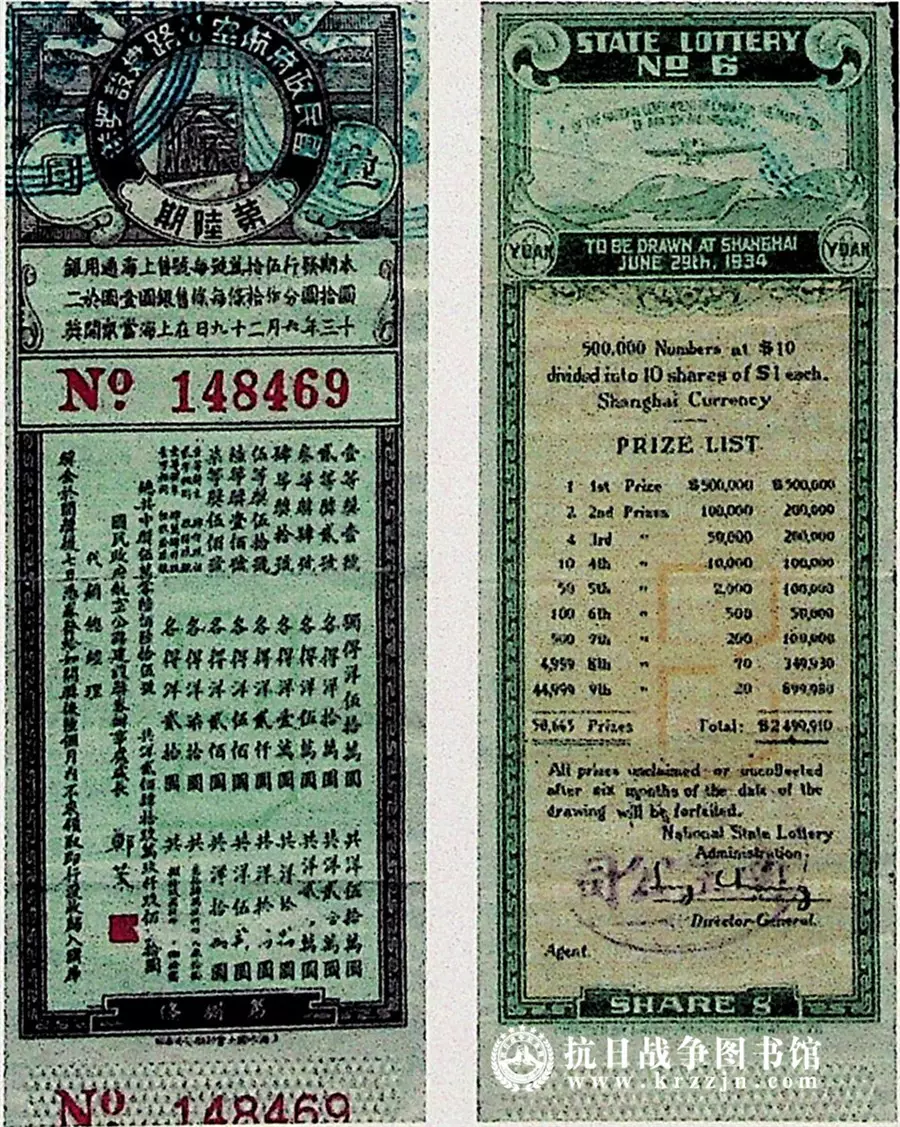 1934年6月29日開獎的國民政府航空公路建設獎券(第六期)。(網上圖片)
