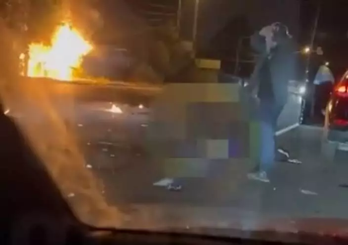 從網上流傳的影片可見,汽車被團團大火吞噬,消防和救護車陸續抵達現場,一名疑似杜金的男子將手舉到額前,表情震驚地環顧爆炸現場。