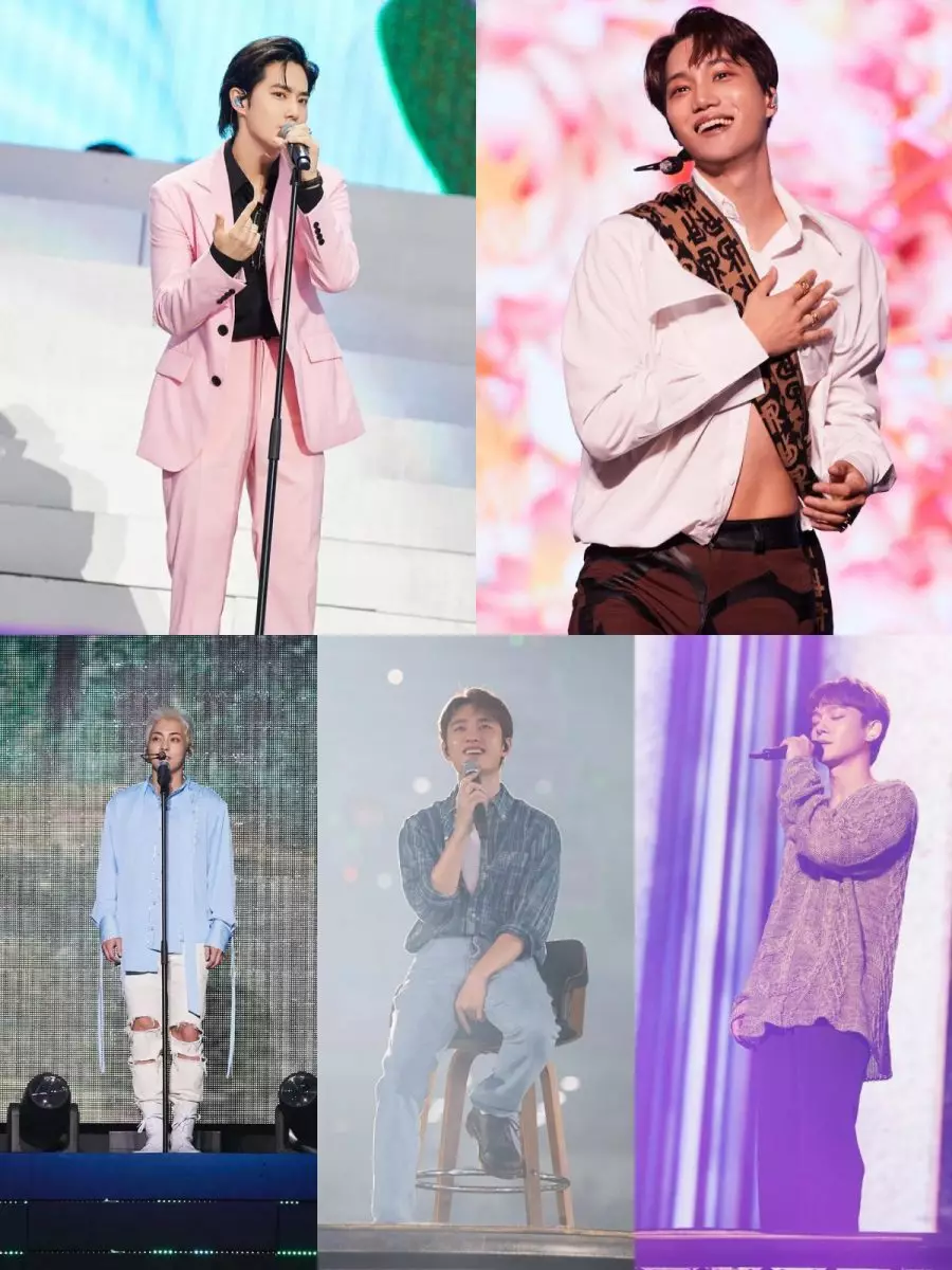 CHEN(左一)退伍後久違與EXO隊友一同現身公開場合(網上圖片)