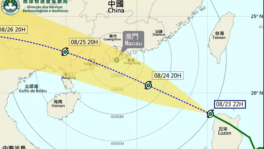 一號風球目前正在生效。 即表示熱帶氣旋的戒備信號,表示熱帶氣旋中心正集結在澳門的800公里範圍內,並預測該熱帶氣旋可能會影響澳門。