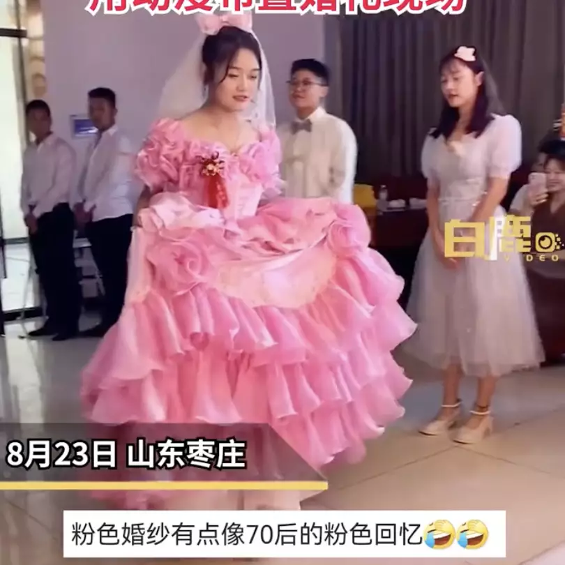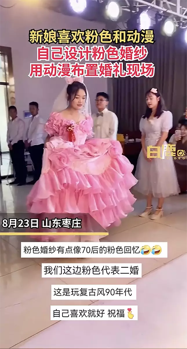 山東新娘堅持穿親手設計「粉色婚紗」行禮 網民嘲:似二婚!