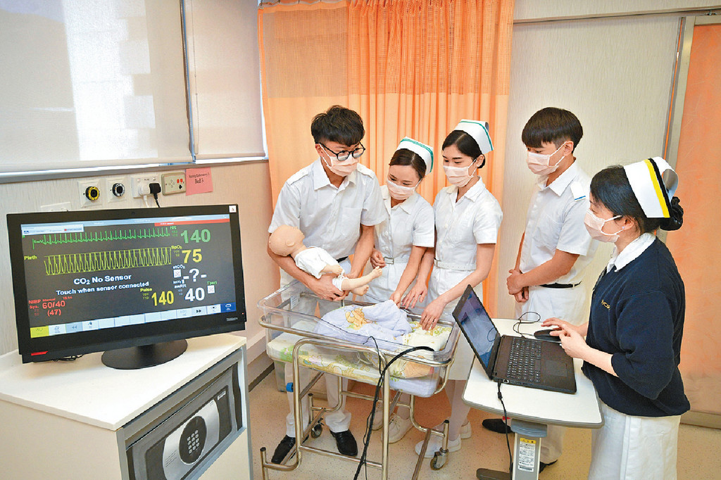 為讓學生有良好的學習環境,學校設有與醫院病房設計一樣的模擬臨床設施,實驗室內亦設有模擬病人和模擬嬰兒,能夠模仿病人的徵狀及生理反應,配合導師講解,讓學生更了解現實環境所面對的挑戰。羅校長指:「這些設施開放予學生自行預約,而且開放時間長,讓學生在課餘時間也可練習,並有導師從旁指導。」