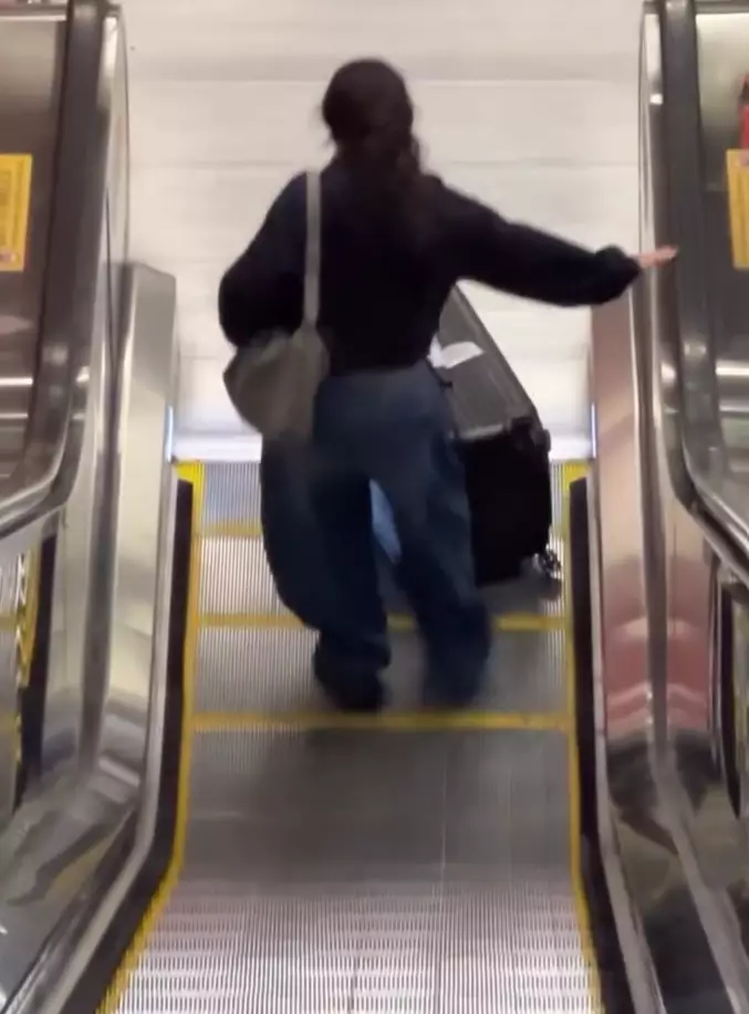 日前在紅磡港鐵站內,一名女乘客的驚險一幕被網民拍下並在社交平台Threads上瘋傳。影片中,該名女子拖著一個黑色行李箱,卻在搭乘扶手電梯時只顧低頭玩手機,完全沒有留意身邊的行李。結果,行李箱瞬間失控,沿著電梯一路高速滾落至地面,險象環生。