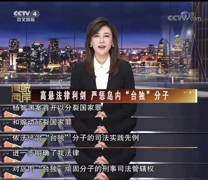 央視4台「海峽兩岸」欄目近日製作訪談節目,題為「高懸法律利劍,嚴懲島內台獨份子」,在輿論上全力打擊台獨份子。