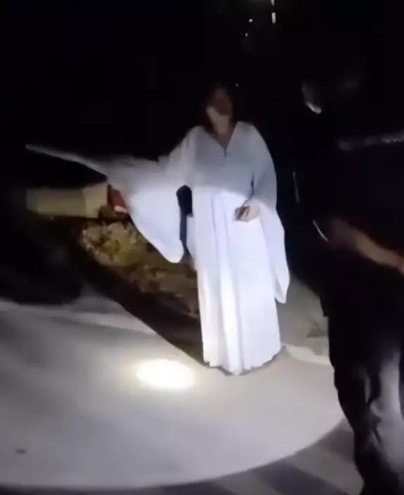 事發在本月22日晚上11時點左右,萬寧一條沒有路燈的鄉間小路上,出現一名身穿白衫白裙、手拿白傘的女子在路邊遊蕩,當時有疫情防控人員駕車經過,被女子嚇到魂飛魄散,不敢繼續往前駛,當場報警求助,等到警察到場才敢上前盤問。