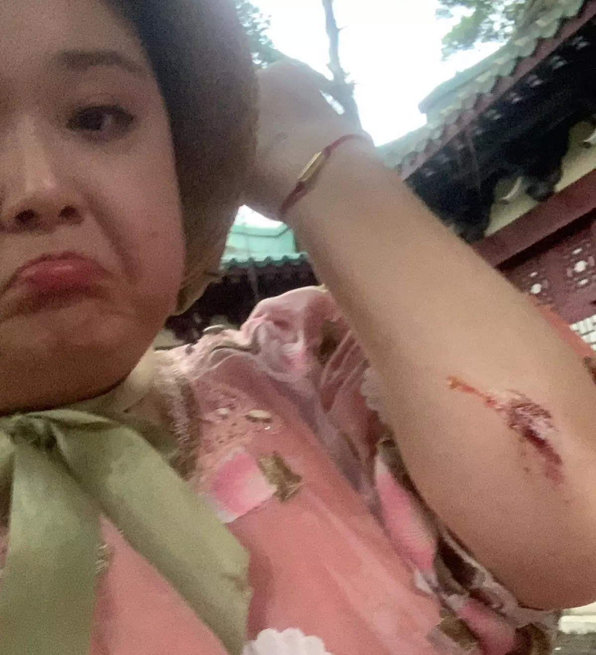 小寶畀長裙同埋高踭鞋考起,有一場戲仲唔小心仆到流晒血。