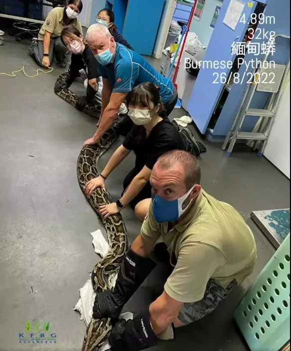 嘉道理農場暨植物園近日在社交媒體發文指,身長破紀錄的雌性緬甸蟒於上月26日從西貢送往該園,牠全長4.89米,重32公斤,是自2011年1月園方與漁護署開始緬甸蟒保育計畫以來,收到和記錄到的最長的蟒蛇。園方指,這條雌蛇的皮膚明顯鬆弛,代表牠最近體重變輕,估計牠在捕獲前剛產卵所引致,並指為牠作記錄和打晶片後,便於同日帶牠回同區,遠離發現處野放。園方續指,之前最長的蟒蛇同樣來自西貢,於2020年7月送往園方的野生動物拯救中心。