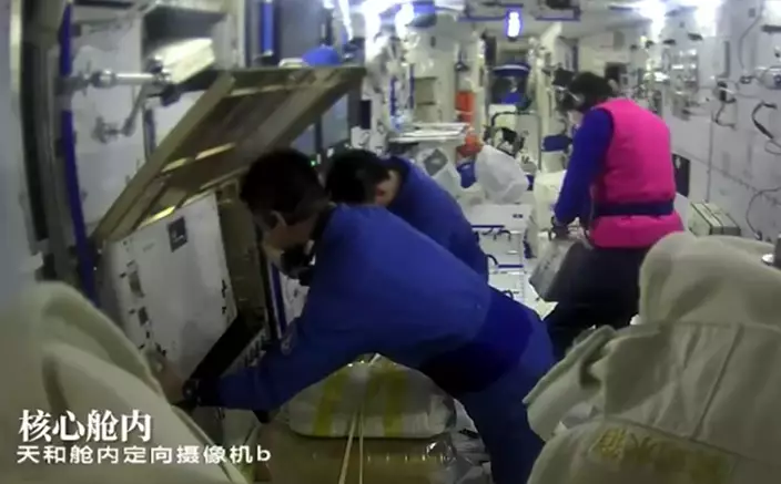 到傍晚6時26分,太空人陳冬打開問天實驗艙氣閘艙艙門。 陳冬、劉洋隨後到艙外作業,蔡旭哲在核心艙內配合支援,共同完成問天實驗艙擴展泵組安裝、問天實驗艙全景相機抬升等各項既定任務。 整個出艙活動預計約7小時。