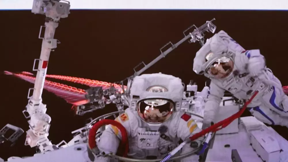 新華社報道,在出艙活動期間,太空人陳冬、劉洋、蔡旭哲在艙內外密切配合,天地間亦周密協同,先後完成了問天艙擴展泵組安裝、問天艙全景相機抬升、艙外自主應急返回驗證等任務,整個過程順利圓滿。