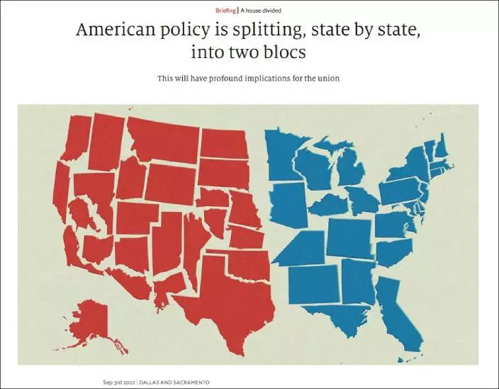 在這樣的大環境下,某些州分滋生極端主義,例如,有得州人認為,新墮胎法過於嚴厲,亦有人指責此前的法規過於寬鬆,但共和黨一黨獨大,以致州的立法者難以提出折衷方案。除此之外,一種州與州之間的新政治對抗也開始盛行。「紅州」懲罰尋求墮胎或變性手術的人,「藍州」則選擇為他們提供庇護;「藍州」鼓勵人們起訴槍支制造商,「紅州」卻帶頭反對;甚至有「紅州」提起訴訟,阻止「藍州」加州制定自己的碳排放標準。文章認為,「這些爭議所造成的分裂,正鞏固一種觀念,即美國的紅藍兩黨是無法求同存異的」。
