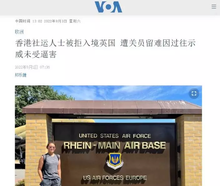 曾經擔任民間人權陣線司儀多年的美籍華人鐘勵君,近日入境英國時,被當地關員刁難。