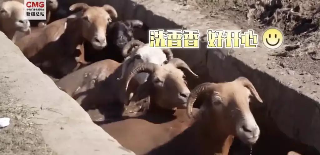 看著這一排排羊群,網友紛紛留言評論道,「不知道為什麼看著都流口水」、「好多串串」、「小羊洗澡看起來好開心」、「恐怕全國只有新疆的羊才有著待遇吧」、「撒點孜然多點辣」。
