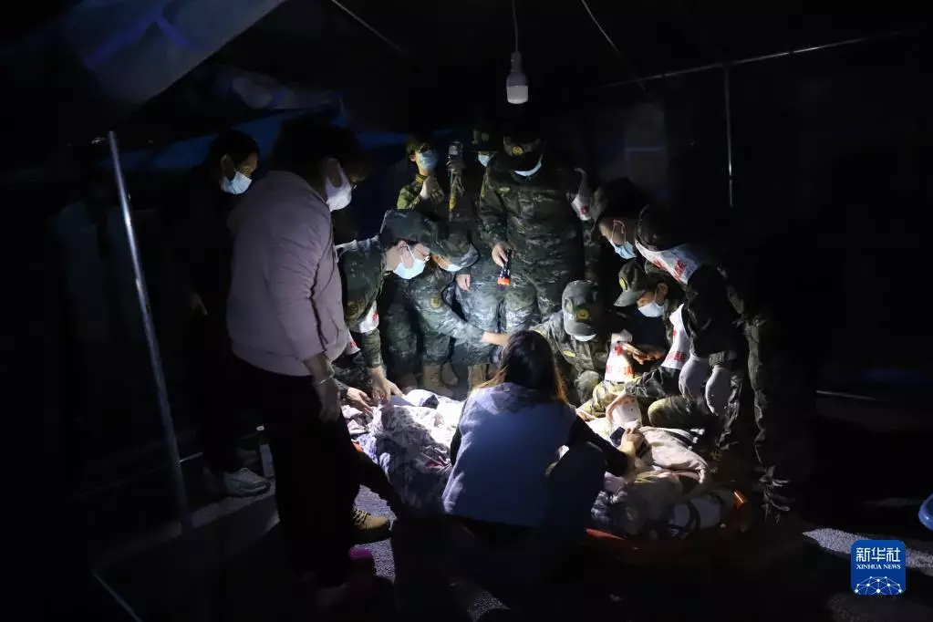 千多名官兵及救援人員等赴四川瀘定進行救援。新華社圖片